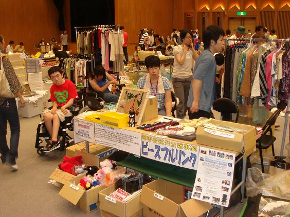 8月10日(日) 京都テルサでバザーに参加しました。 僕はピースフルリンクに来て初めてバザーに参加しました。 この日は僕と藤本さんと廣田さんと、 ボランティアの西山さんと久保さんと、 スタッフの井上さんと橘さんと販売をしました。 僕も自宅から持ってきた、 商品がすぐに売れて良かったです また機会があれば参加したいと思いました. 七宝焼ももっと売れるようにしていきたいです。
